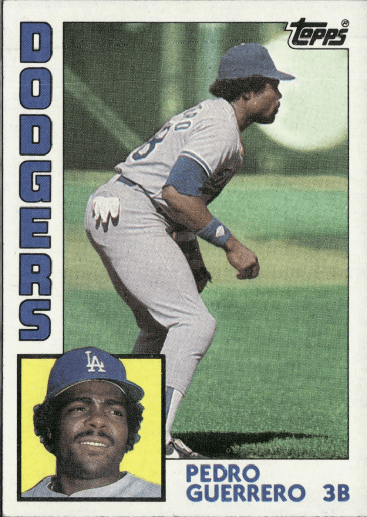 Pedro Guerrero You thought he was just a bat-first guy with no position. But in 1983, Guerrero played 160 games, hit .298 with 32 home runs, 103 RBIs, and posted a .904 OPS—third-best in the National League. 1982 was even a tad better, still 32 home runs but with a .304 batting average. Despite those numbers, he often got overlooked. Don’t skip his 1984 Topps card; it tells the story of these incredible years.