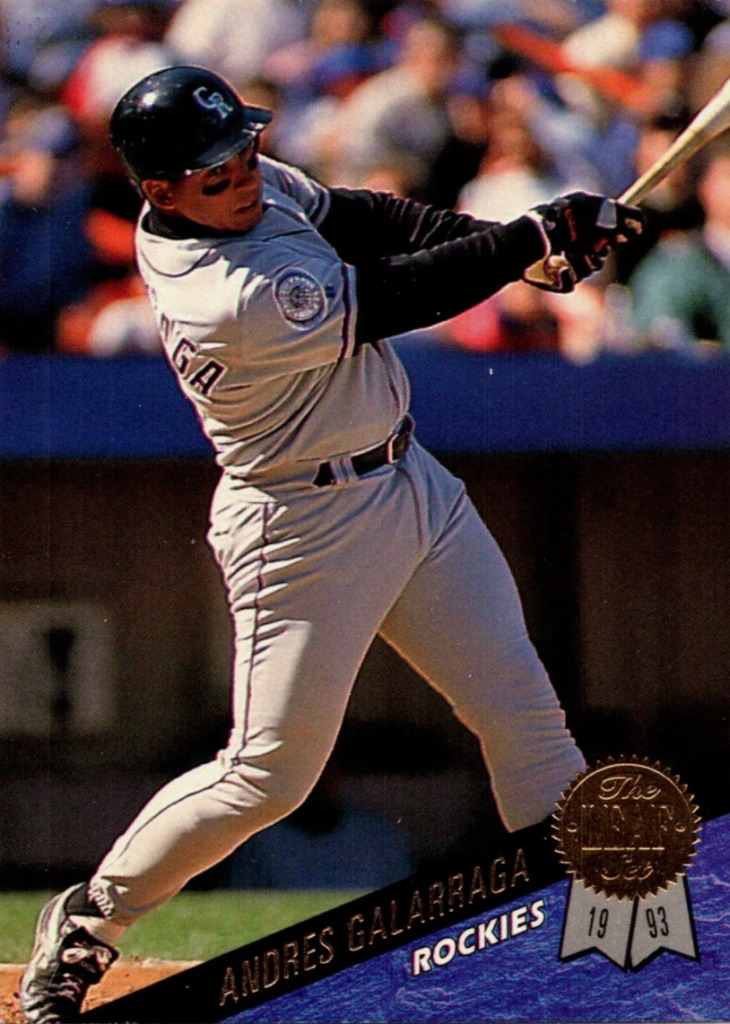 Andrés Galarraga You blamed Coors Field. But the Big Cat was raking long before Denver. Batting titles, nearly 400 HRs, and two comebacks from cancer. His 1993 Leaf card is a tribute to resilience—Galarraga at the peak of his return, reminding collectors that greatness isn’t always about the rookie season.
